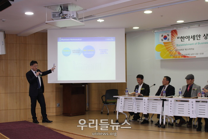 ▲ 건강기능식품 회사 (주)파미니티 김성수 대표가 베트남 시장 진출 경험을 토대로 발표하고 있다. © 우리들뉴스 박상진 기자